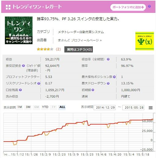同時運用(各5千通貨)で、最大DDが最小96pips