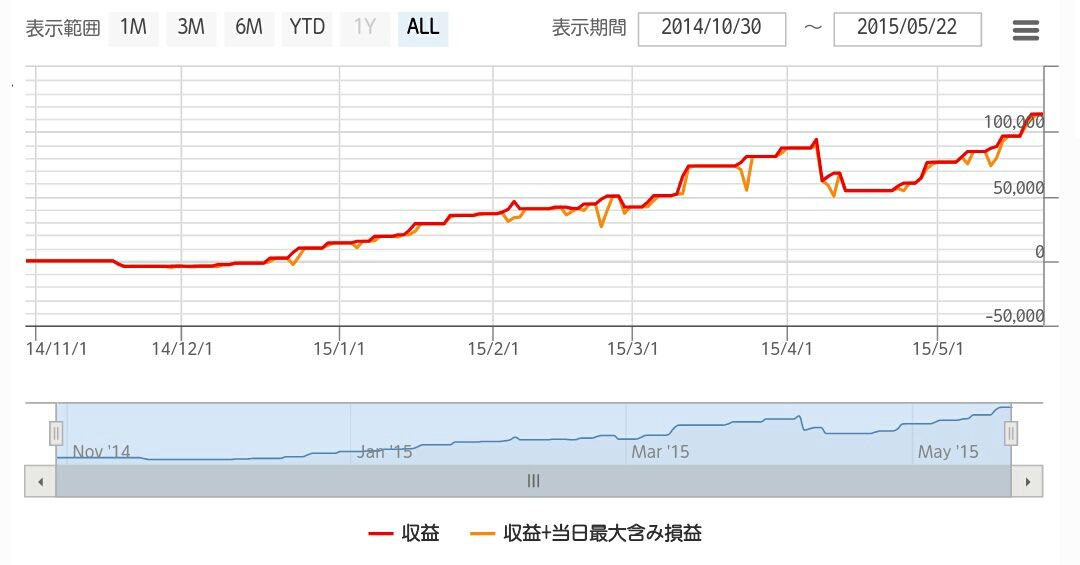 スキャルピングですので、可能な限り小さいほうが良い成績が得られます。