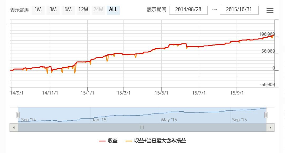 右肩上がりのキレイな資産曲線です。