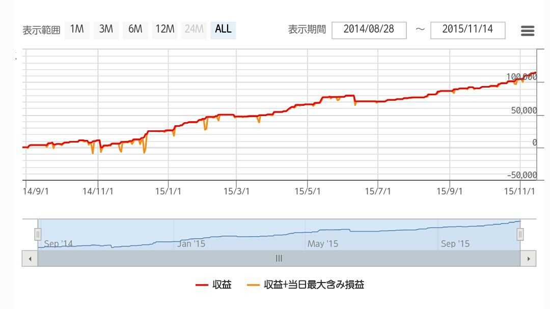 右肩上がりの資産曲線ですね…コツコツドカンを認識してから運用開始