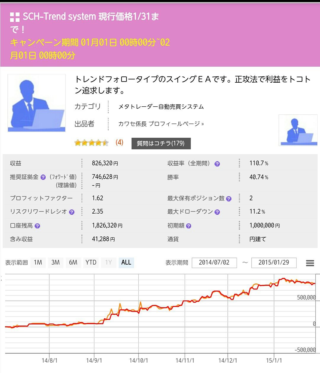 トレンドフォロータイプのスイングEAです。正攻法で利益をトコトン追求します。
